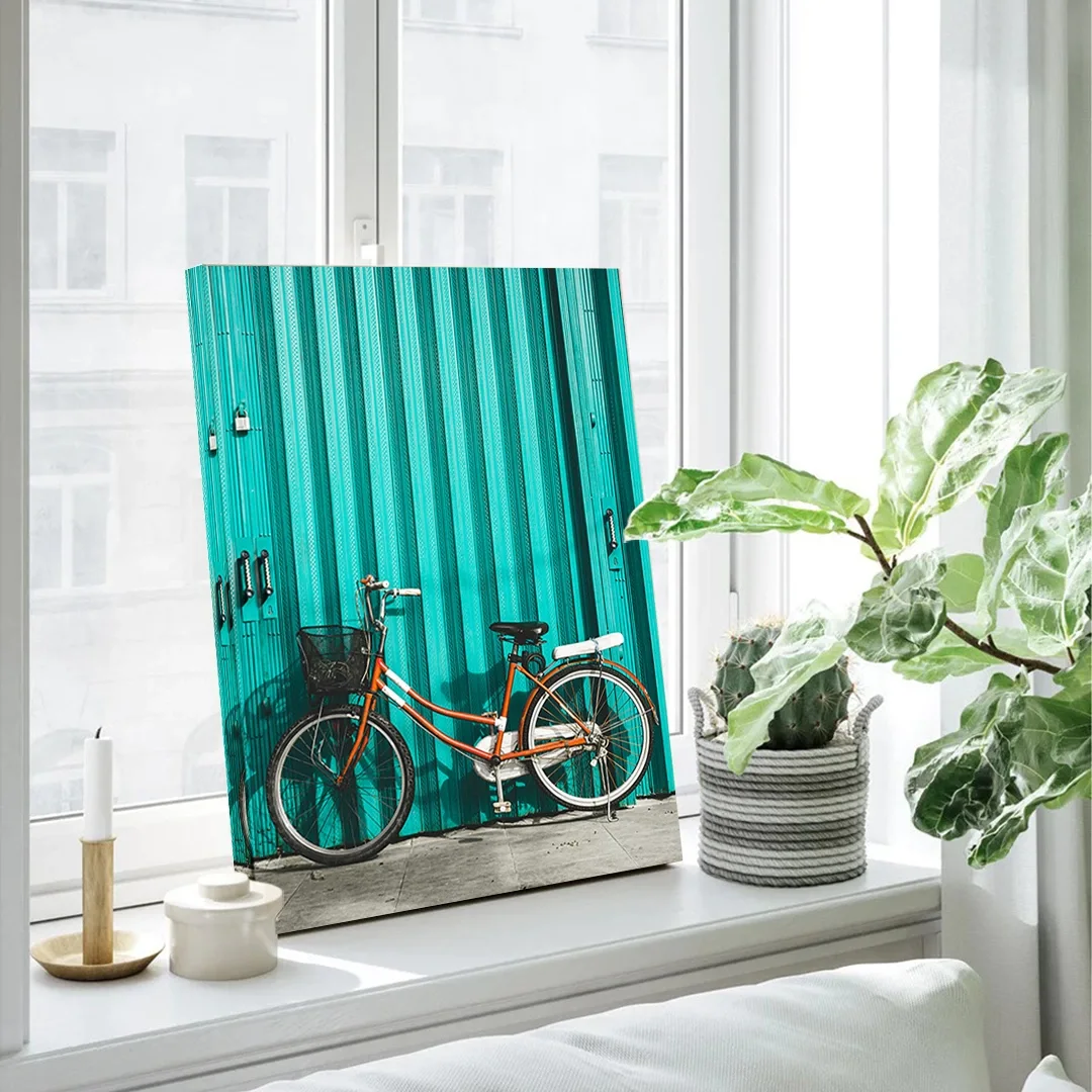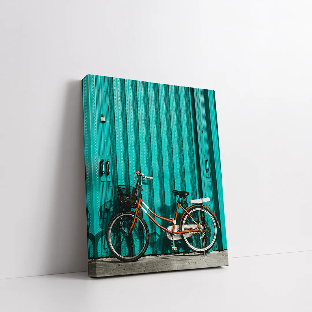 Turkuaz Bisiklet Dikey Kanvas Tablo