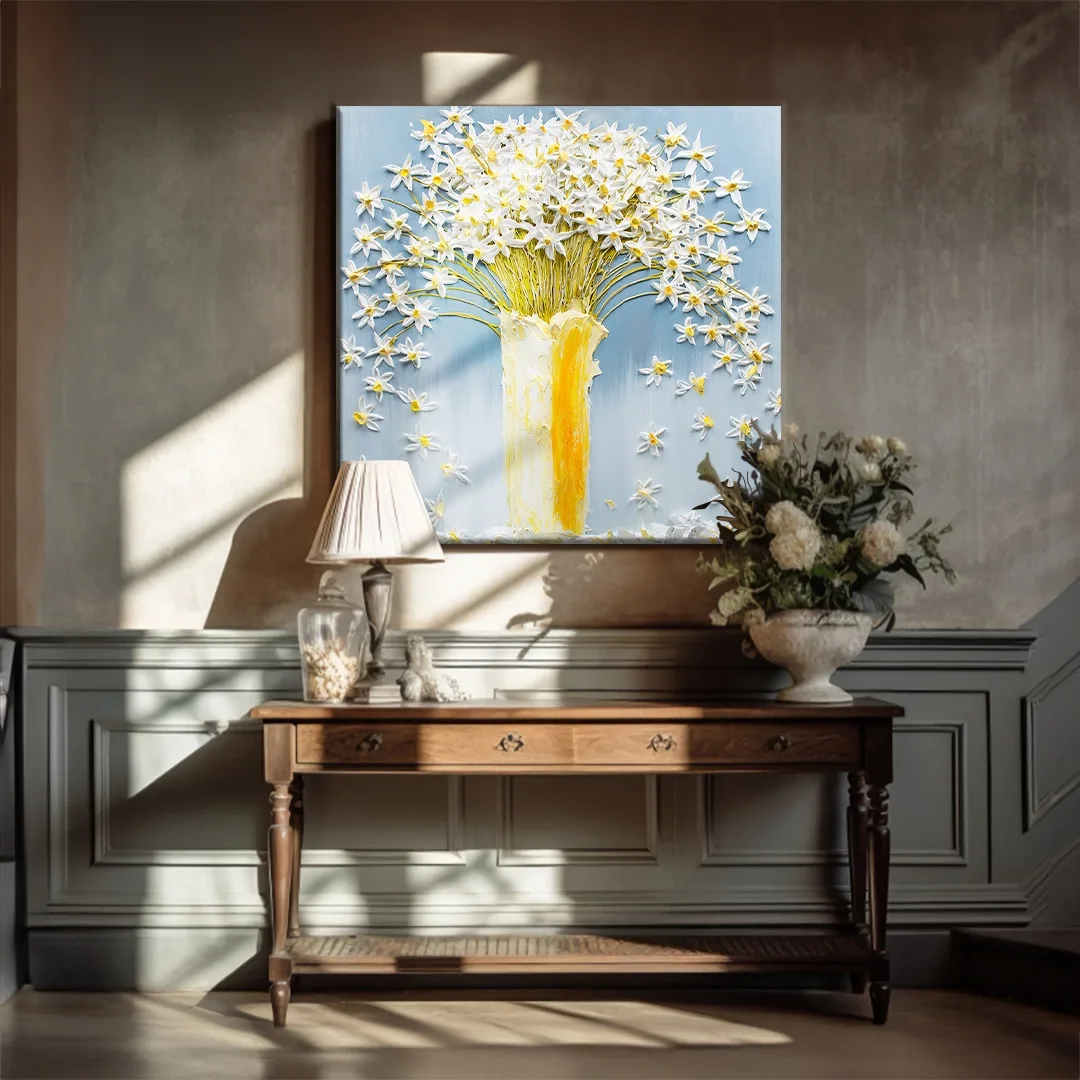 Resmin dokusu ve renklerinin zarif bir şekilde devam ettiği özel bir tasarıma sahiptir. Bu detay, tablolarımızı ek çerçeve ihtiyacı olmadan asılabilir kılar, böylece sanat eserleriniz odanızın atmosferine mükemmel bir şekilde uyum sağlar. Her bir tablomuz, sanatseverlere özel bir estetik deneyim sunmak için özenle tasarlanmıştır.