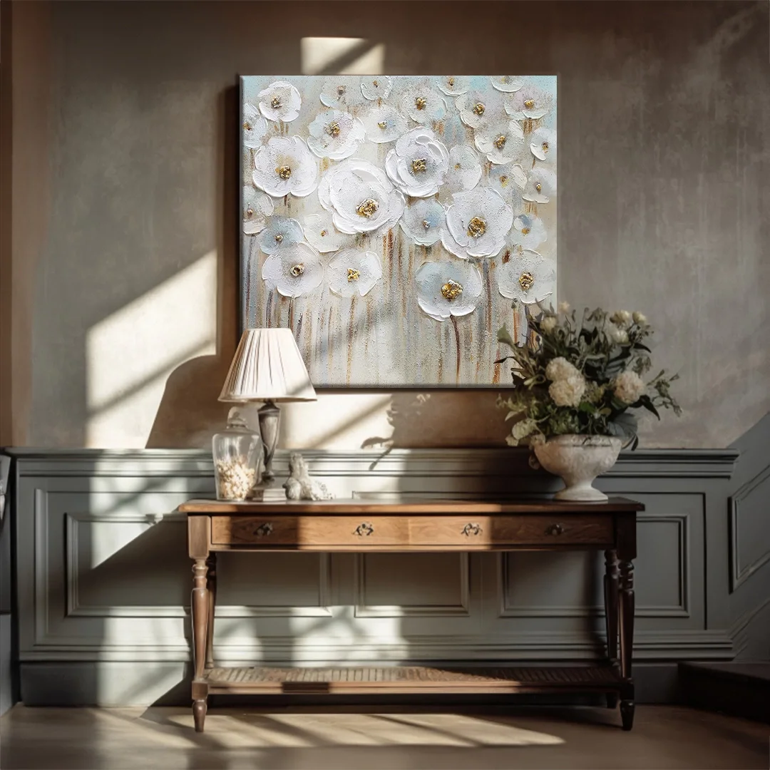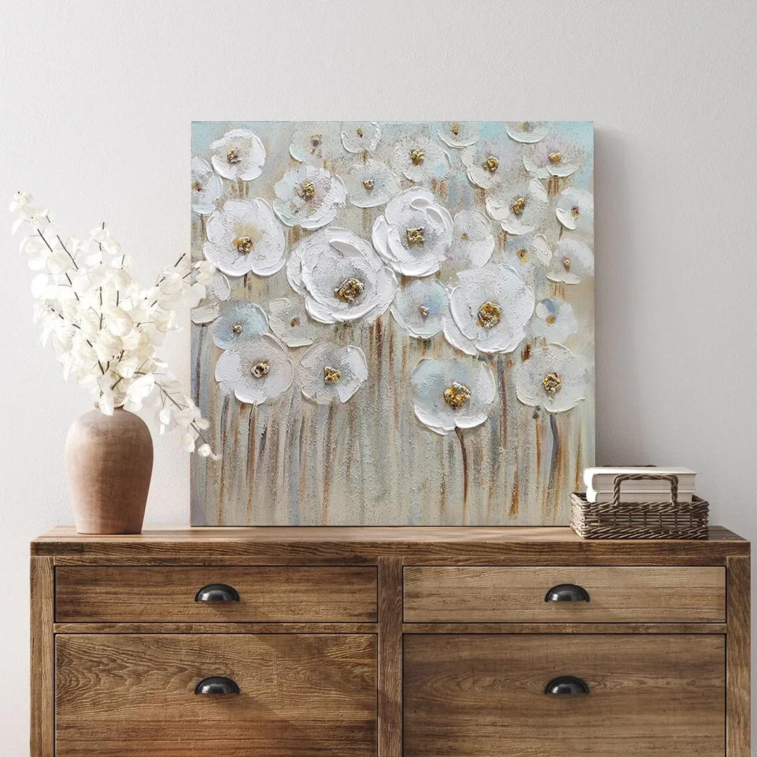 Beyaz Çiçek Bahçesi Kanvas Tablo