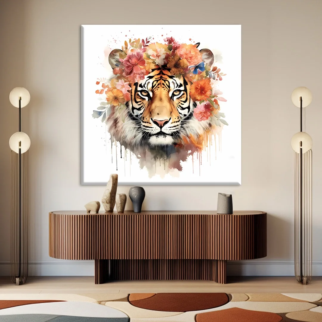 Yeleleri Çiçekli Aslan Kanvas Tablo