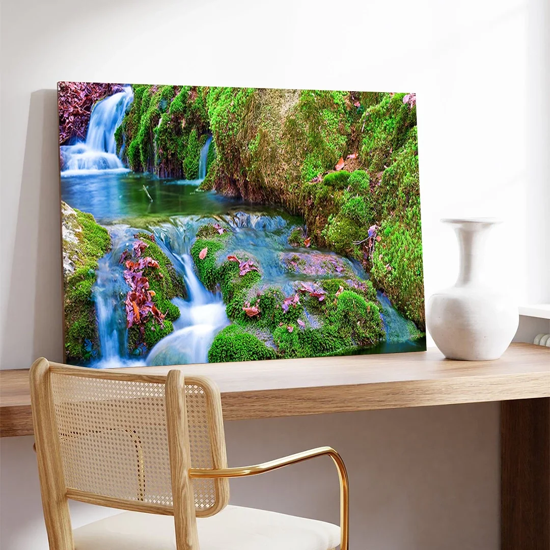 Yemyeşil Şelale Kanvas Tablo