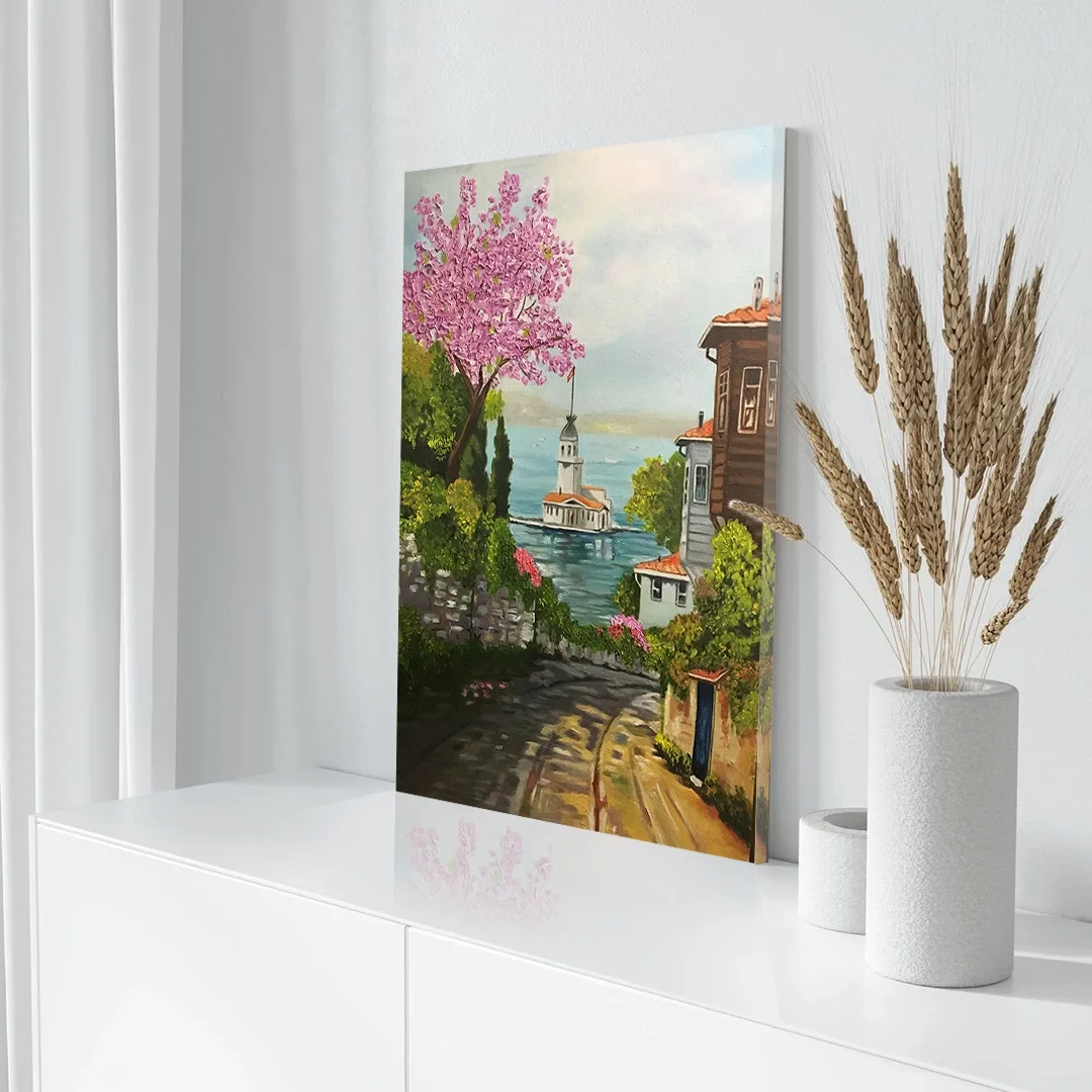 Kanvas tablonuzun bakımı oldukça kolaydır. Düzenli olarak yumuşak, kuru bir bezle tozunu alın. Direkt güneş ışığından ve nemli ortamlardan uzak tutun. Gerektiğinde hafif nemli bir bezle silebilirsiniz, ancak tablonun fazla ıslanmamasına dikkat edin.
