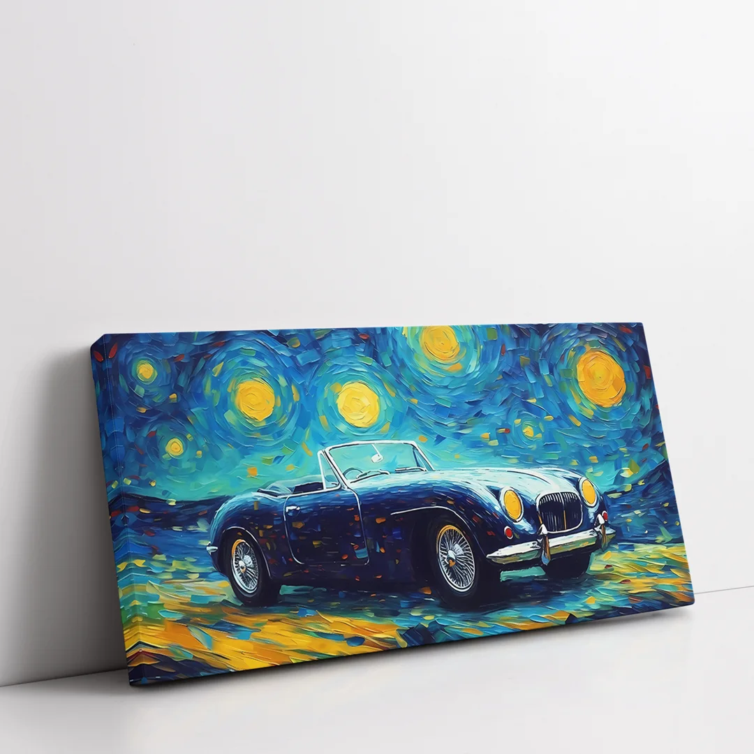 Yıldızlı Gece Araba Panoramik Yatay Kanvas Tablo